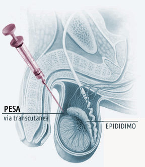 - PESA (Percutaneous epididymal sperm aspiration): Il recupero degli spermatozoi viene effettuato per via transcutanea a livello dell’epididimo, organo adeso al testicolo al cui interno gli spermatozoi si depositano e sviluppano la loro motilità;